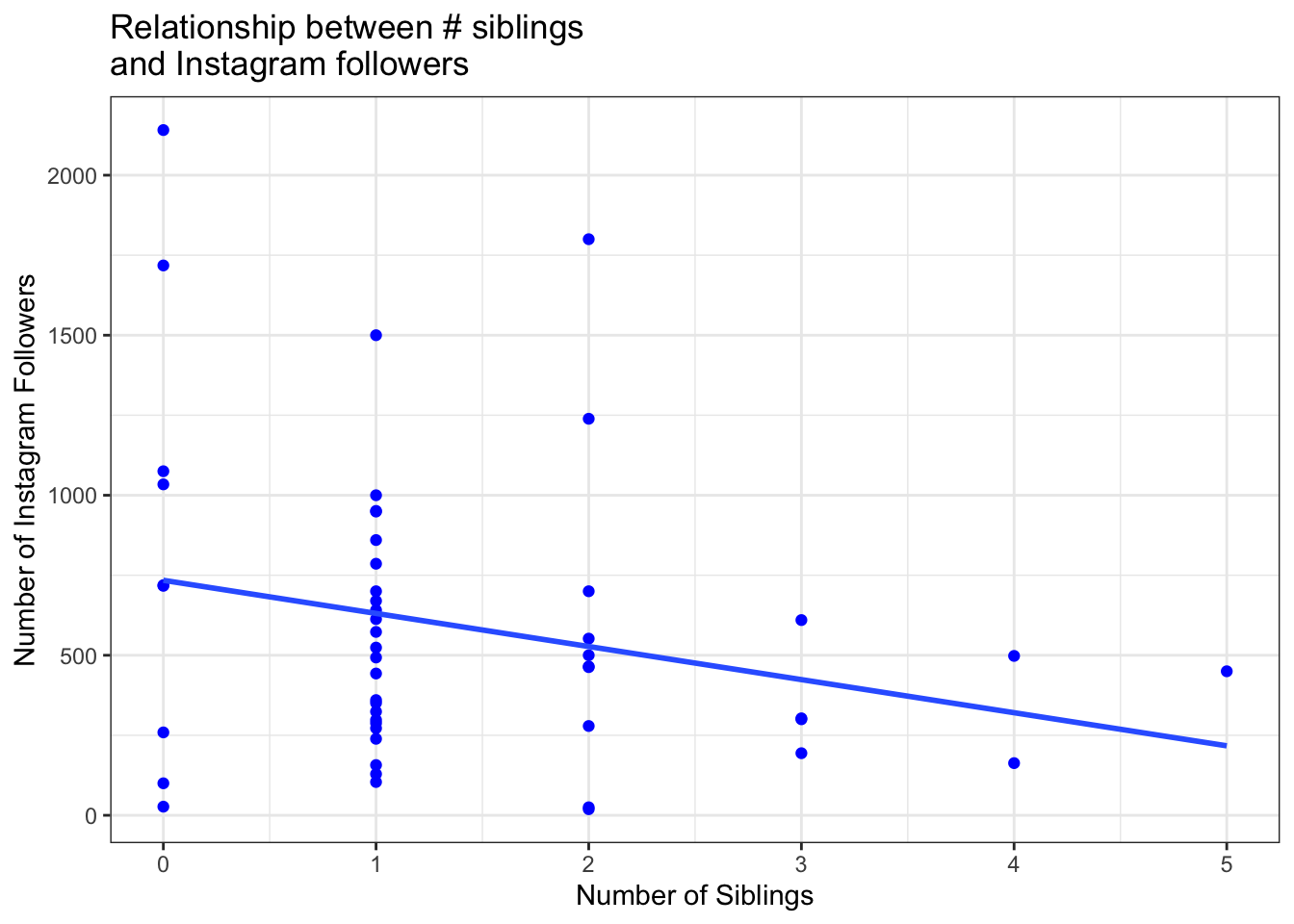 siblingsvariable when the filter is on (so folks who have one sibling are not included). (You should probably use Analyses: Exploration: Descriptives.) Then find the mean ofsiblingswhen nothing is filtered out. Which one is larger? These answers are #2 on your answer sheet.