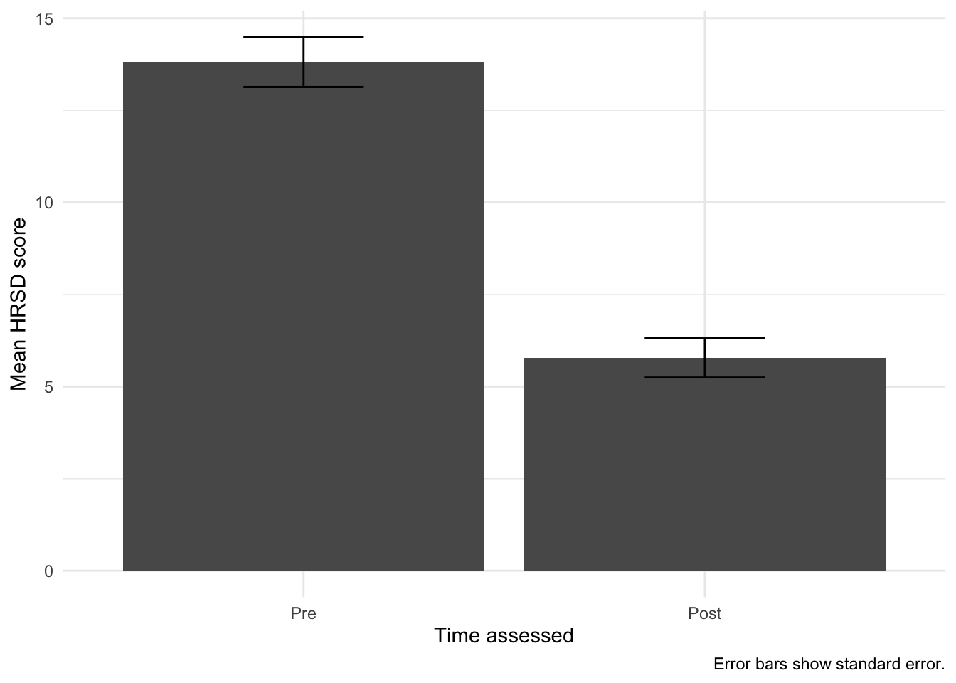 - To get more information from the difference scores between pre- and post- HRSD scores, we’ll use those