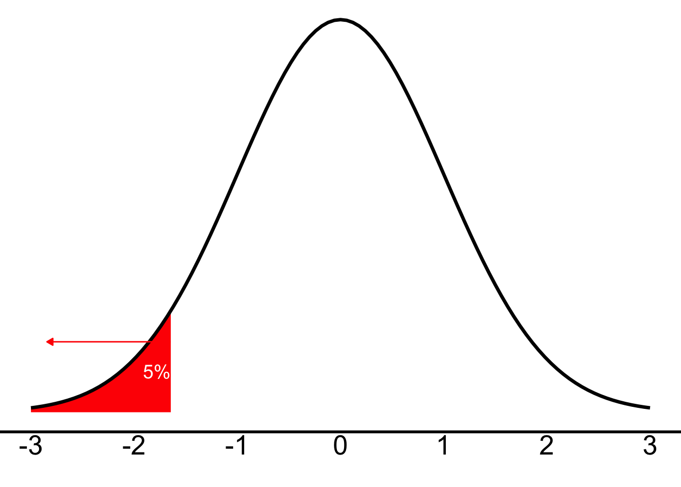 We’re still using the z-distribution, but now we’re only interested in scores that fall in the lower 5% of the distribution—where 95% of the scores are higher: