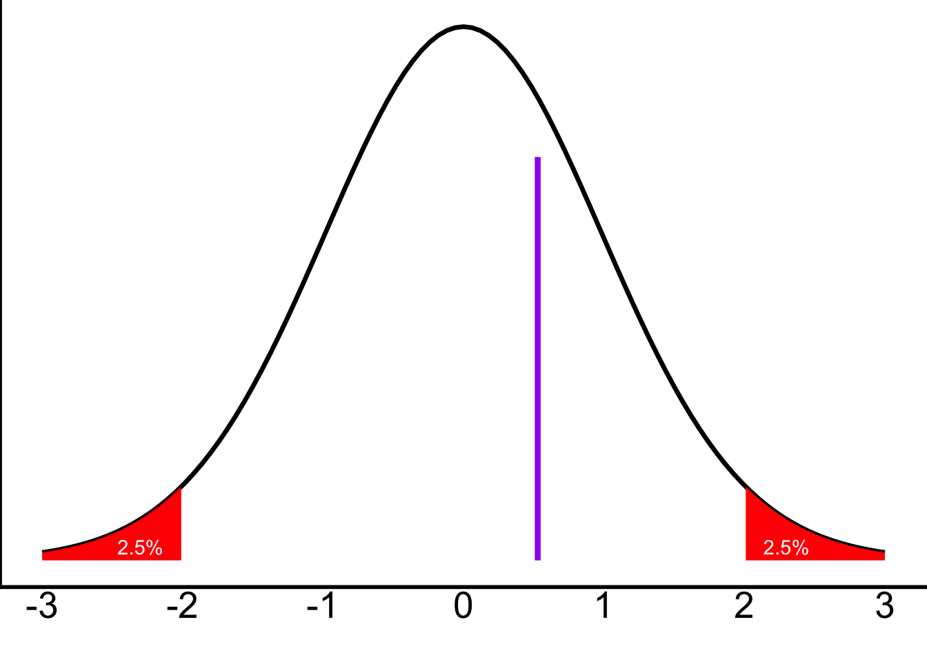 Visually, you should be able to see that this score falls within the null distribution; it isn’t extreme. Therefore, it makes sense that we have failed to reject the null.